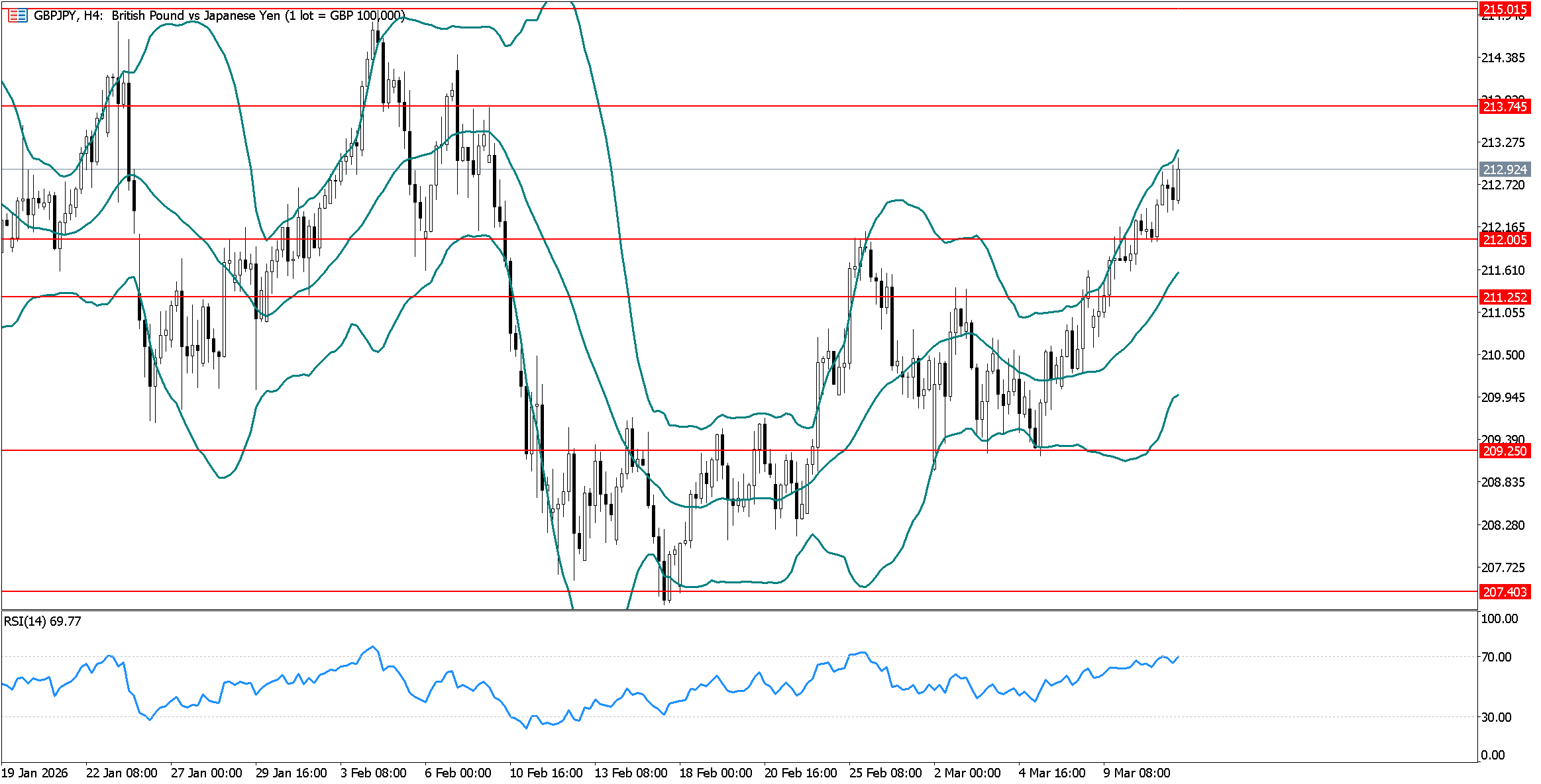 يتحرك الزوج في اتجاه صاعد على إطار الاربع ساعات, ويتداول حول مستوى 203.80 الذي يمثل مستوى مقاومة افقي على اطار الاربع ساعات, حيث باختراقه يدعم استمرار الاتجاه الصاعد واستهداف مستوى 204.40 ثم 205.25. ويظهر مؤشر القوة النسبية احتمالات استمرار الاتجاه الصاعد بتحركه بين مستوي 50 و70.